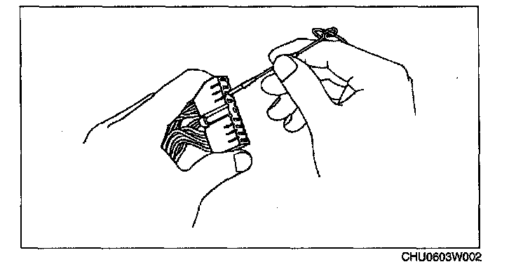 2. Insert the male terminal and then fit the female terminal side to female terminal. Inspect whether the malfunction is in the female terminal.