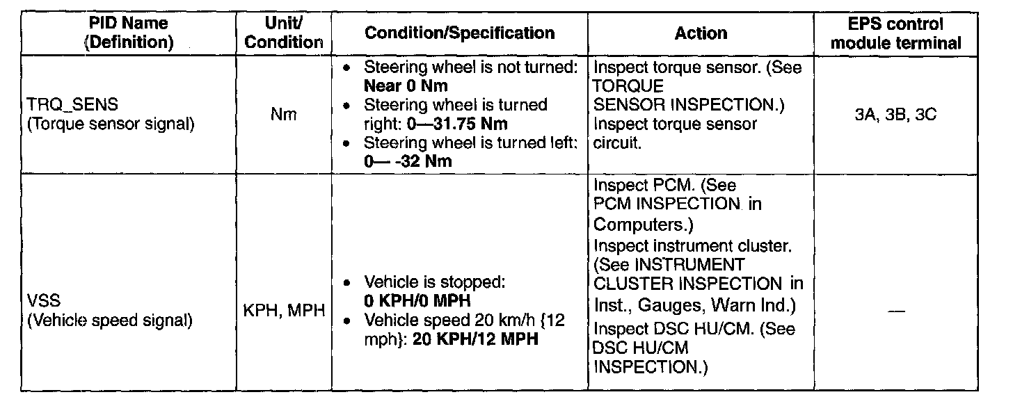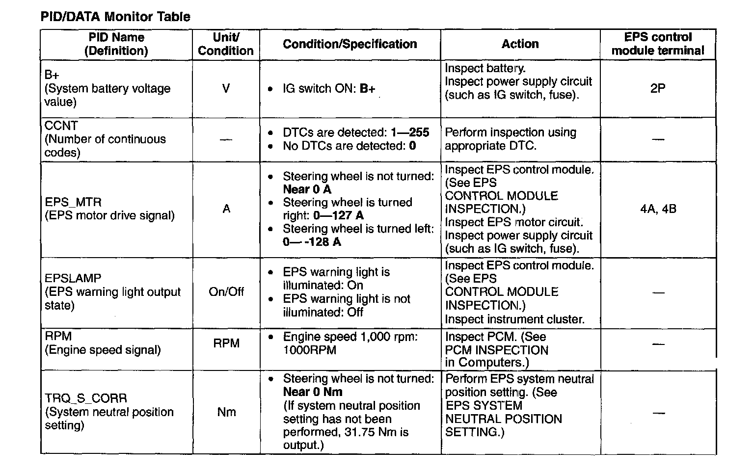 PID/Data Monitor Table: