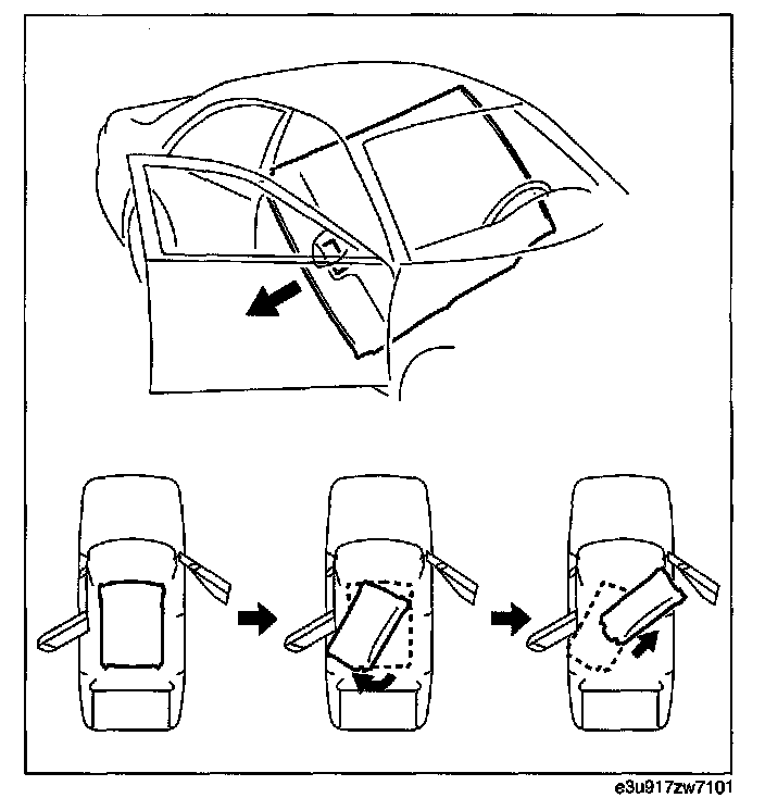 9. Take the headliner out from the opened front passenger-side door. (4 door)