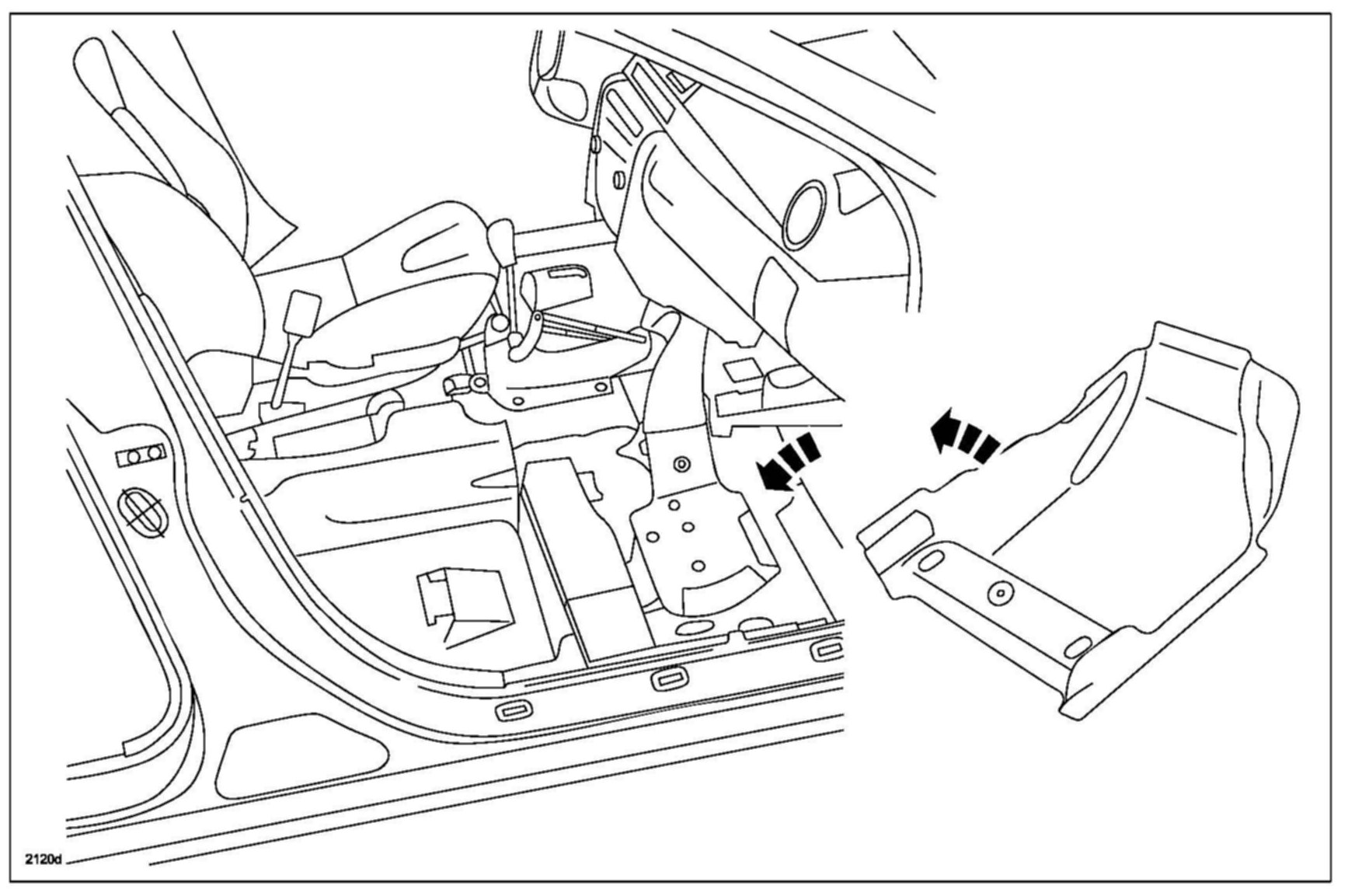 2. Remove the front seat. Refer to MS3 online instructions or Workshop Manual section 09-10 FRONT SEAT REMOVAL/INSTALLATION.