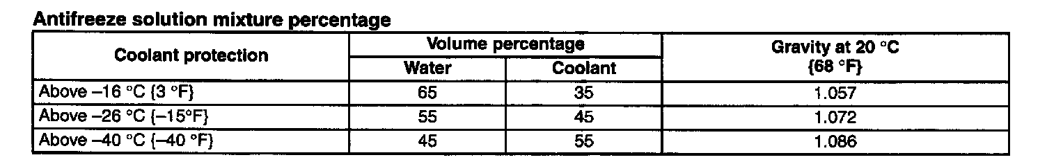 - Use engine coolant at a concentration that meets the environmental conditions in which the vehicle is driven, otherwise engine damage could occur.