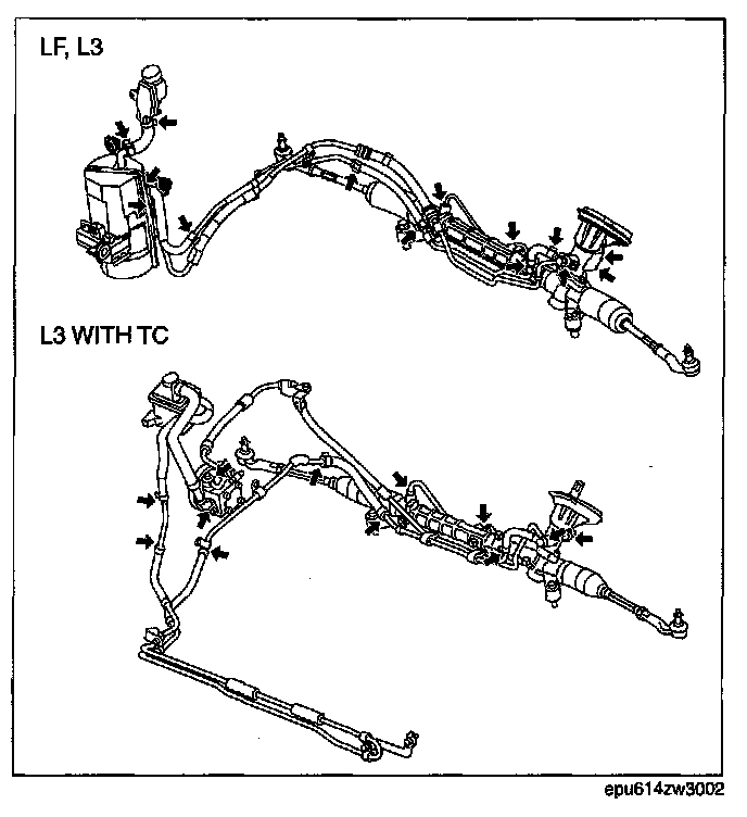 5. Start the engine, turn the steering wheel to the left and right to raise the power steering fluid to the appropriate temperature (50-60° C (122-140° F)).