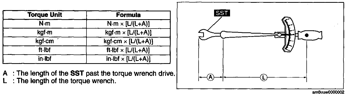 - When using a torque wrench-SST or equivalent combination, the written torque must be recalculated due to the extra length that the SST or equivalent adds to the torque wrench. Recalculate the torque by using the following formulas. Choose the formula that applies to you.