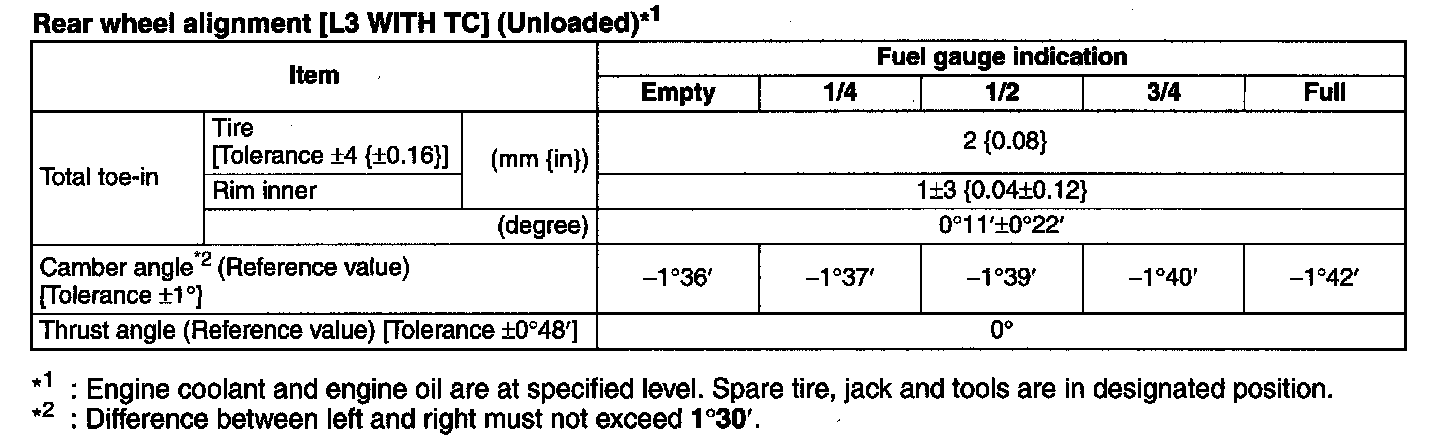 Rear wheel alignment [L3 WITH TC] (Unloaded)*1: