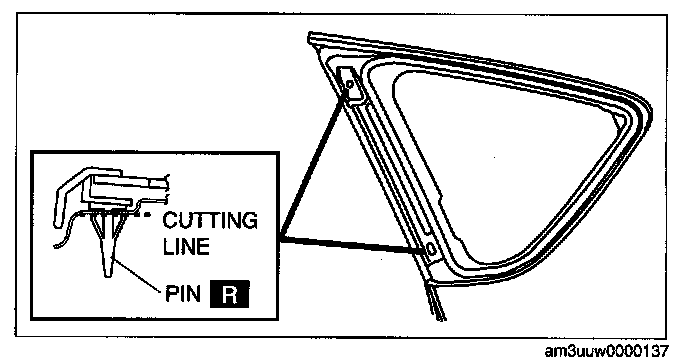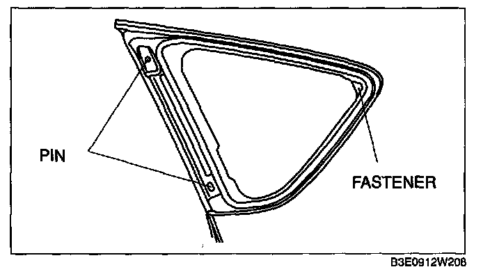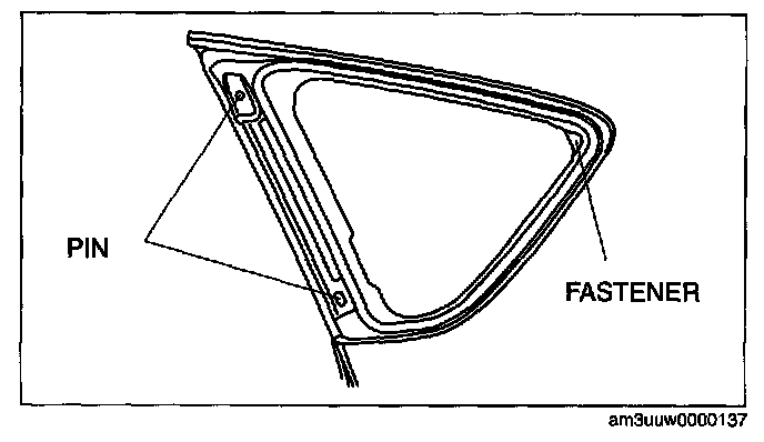 CAUTION: Proper installation of the glass may be difficult if sealant is cracked or the glass is pushed out by air pressure when a door is opened/closed with all the window glass closed. Leave all the windows open until the quarter window glass is installed completely.