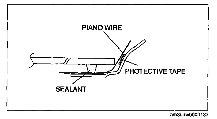 NOTE: As the upper part of the pin adheres to the sealant, cut it using the piano wire.