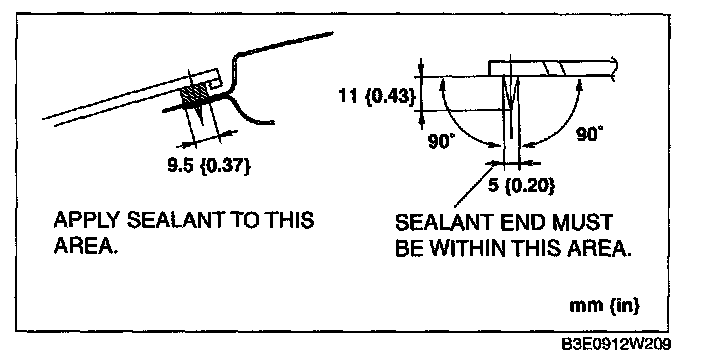 2. If the sealant has come off completely in any one place, apply some primer after degreasing, and allow it approx. 30 min to dry. Then apply 2 mm (0.08 in) thickness to new sealant.