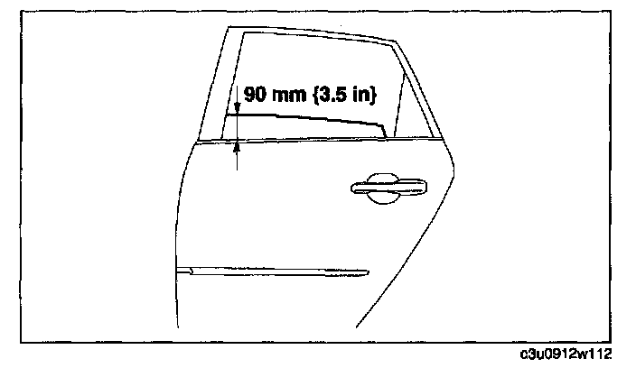 3. Adjust the door glass position as shown in the figure.