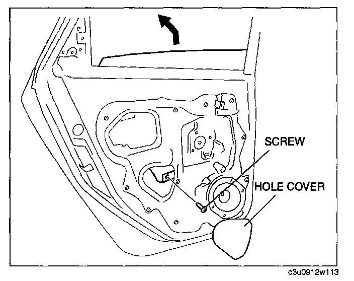 13. Lift the rear door glass up and remove while tilting it.