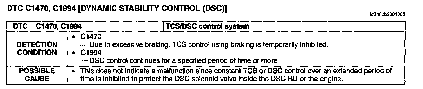 DTC C1470, C1994 [DYNAMIC STABILITY CONTROL (DSC)]