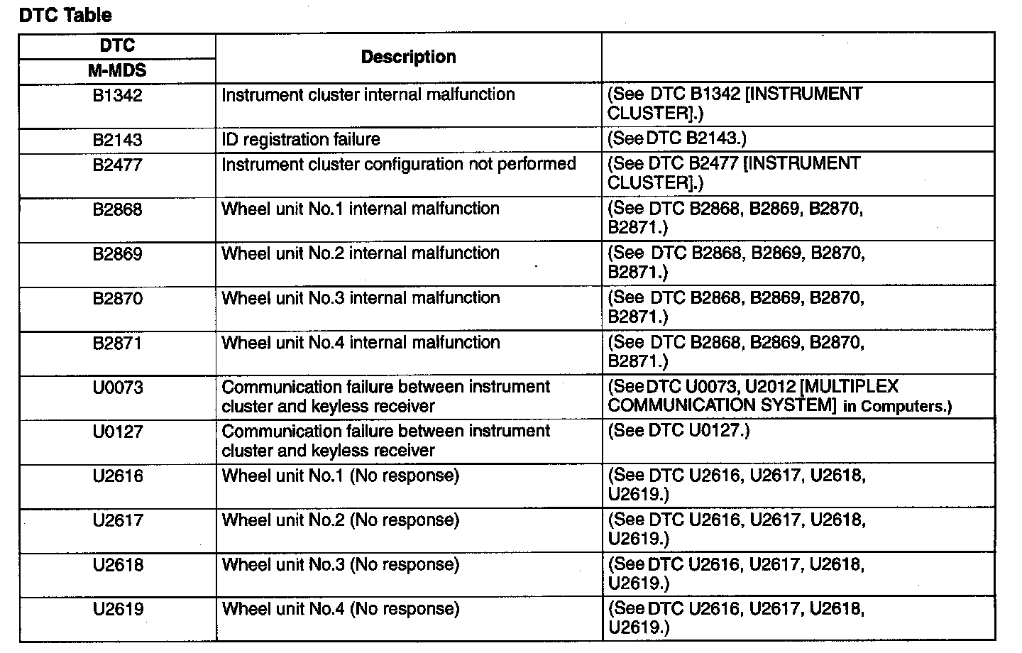 DTC Table: