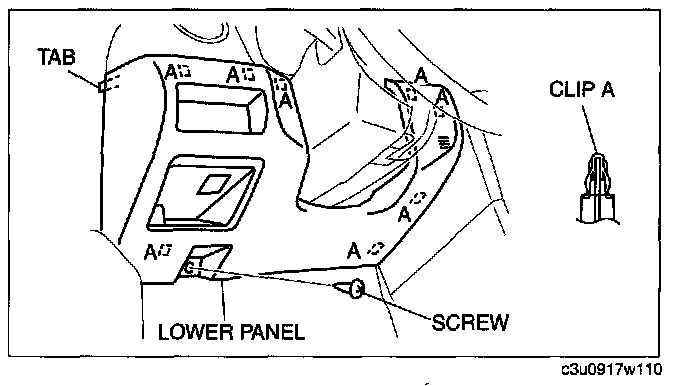 6. Pull the lower panel outward, and detach clips A and tab.