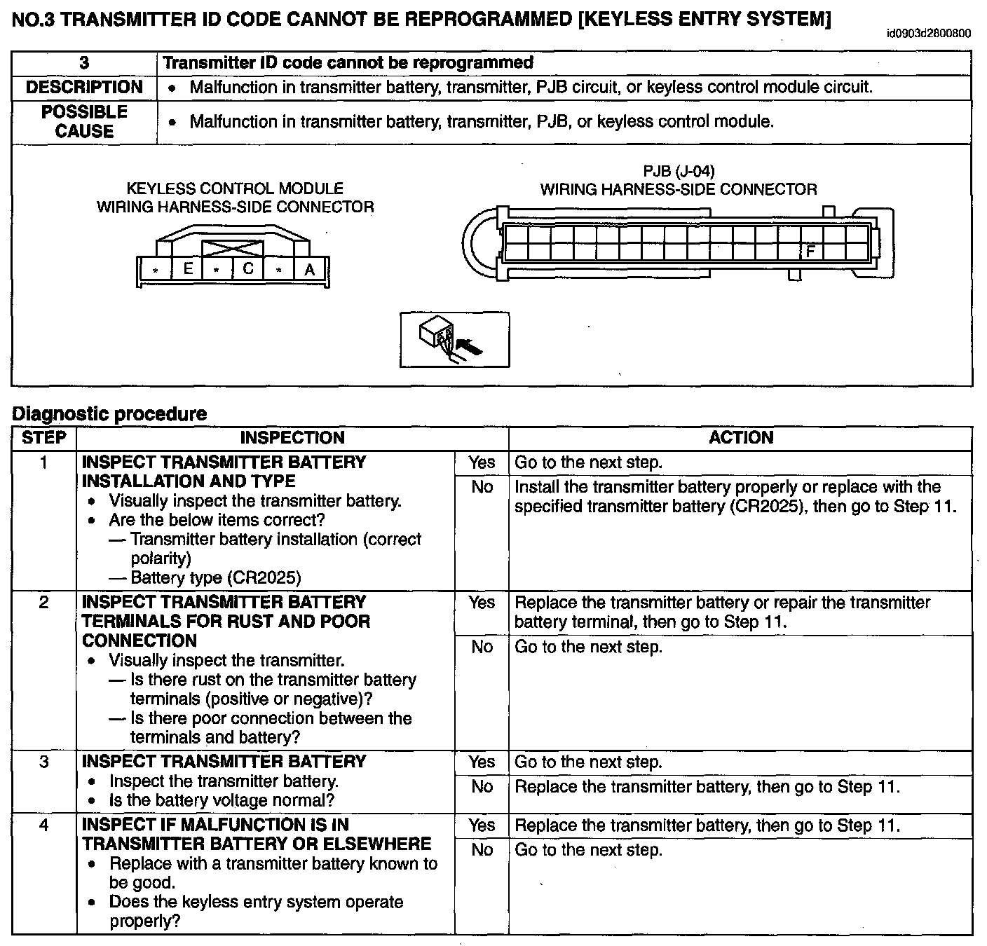 No.3 Transmitter ID Code Cannot Be Reprogrammed