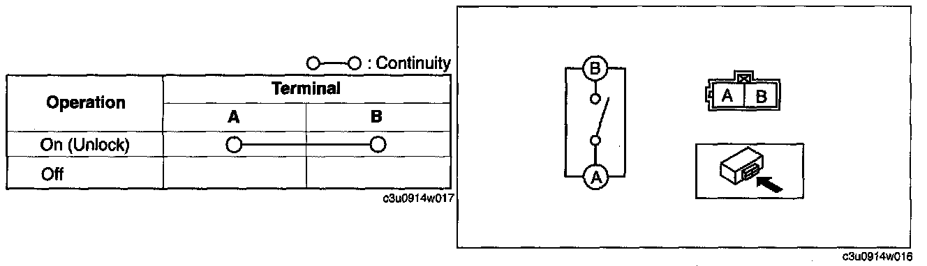 Inspect for continuity between the trunk lid key cylinder push switch terminals.