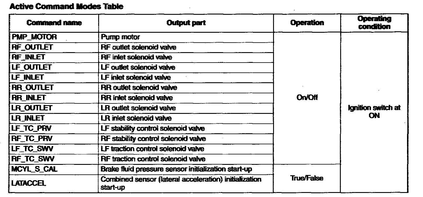 Active Command Modes Table: