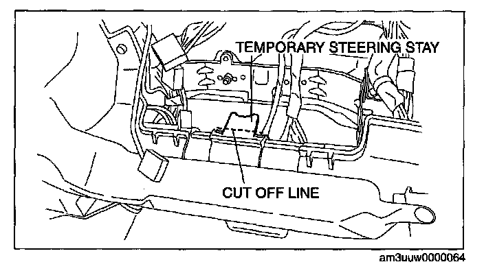 4. Cut off the temporary steering stay on the passenger's side.
