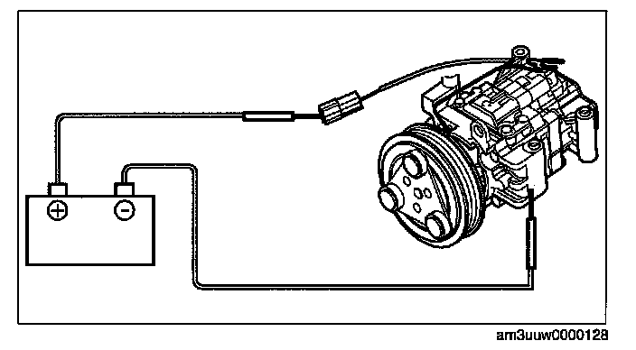 1. Connect battery positive voltage to magnetic clutch terminal A and the A/C compressor body to ground.
