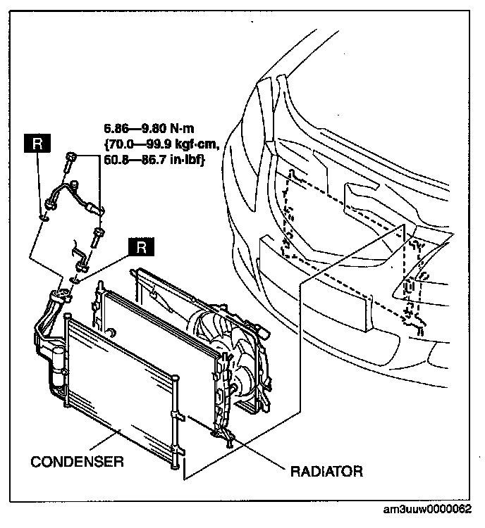 CONDENSER REMOVAL/INSTALLATION1. Disconnect the negative battery cable.