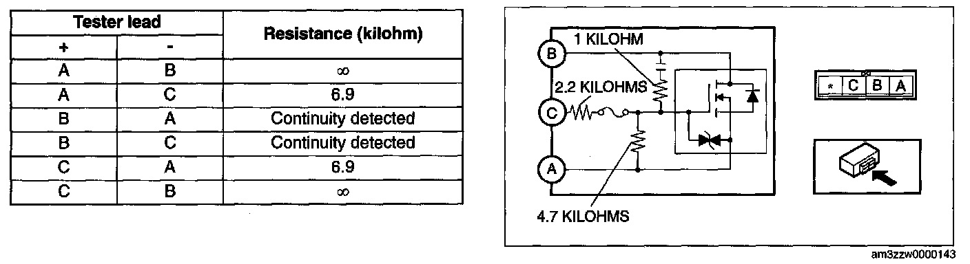 POWER METAL OXIDE SEMICONDUCTOR FIELD EFFECT TRANSISTOR (POWER MOS FET) INSPECTION1. Verify that the continuity between the power MOS FET terminals is as indicated in the table.