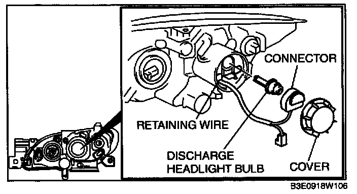 WARNING: Incorrect servicing of the discharge headlights could result in electrical shock. Before servicing the discharge headlights, always refer to the discharge headlight service warnings.