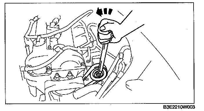 3. Turn the center of the auto tensioner pulley counterclockwise to release tension to the drive belt tension.