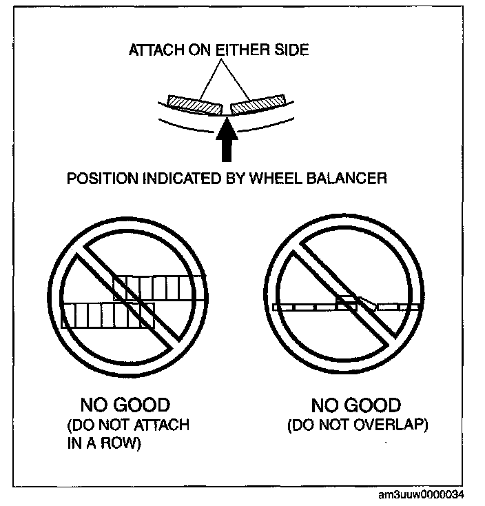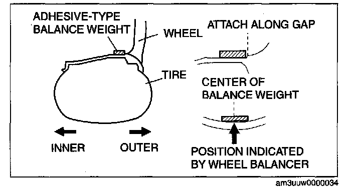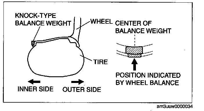 ^ If the remaining unbalance exceeds the specifications, adjust the wheel balance again.