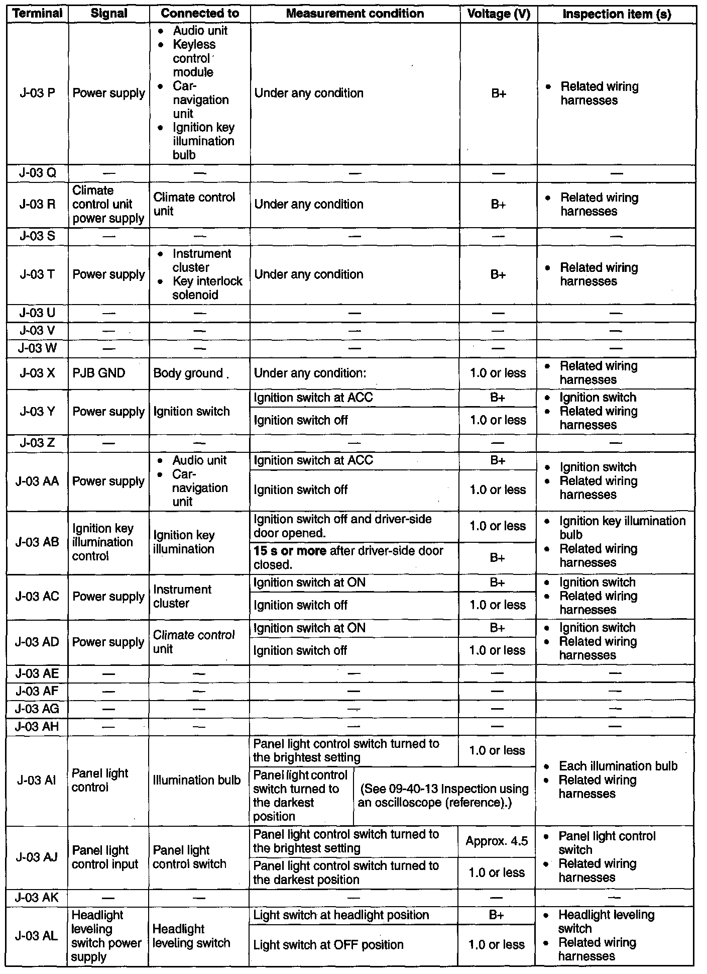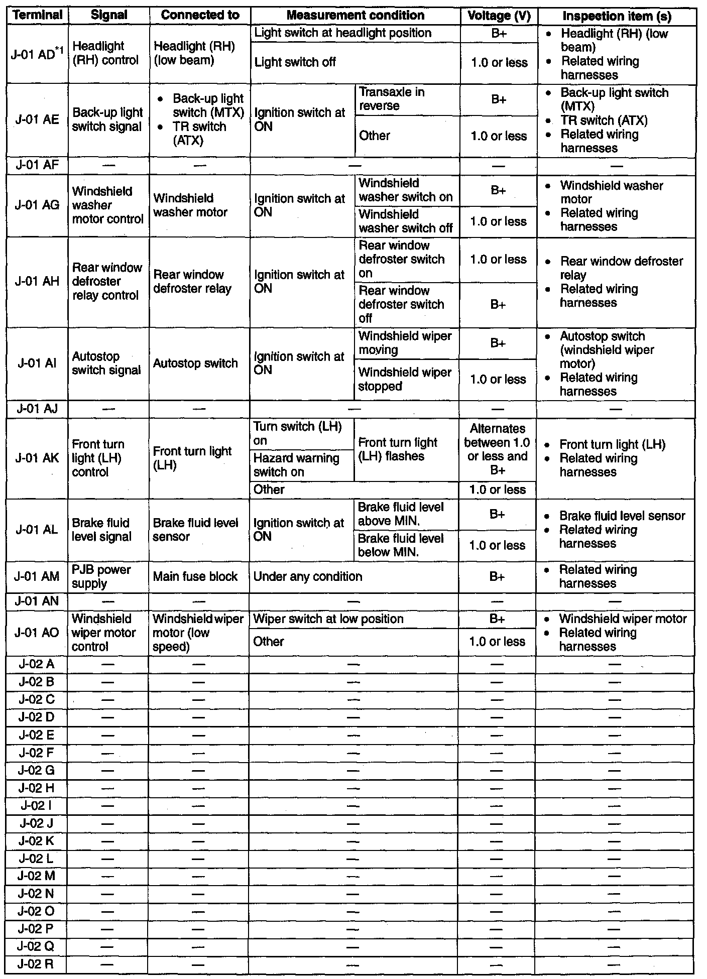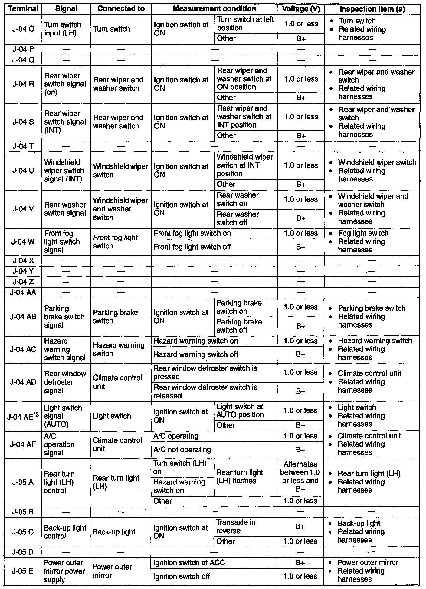 Terminal Voltage Table (Reference) (Part 10):