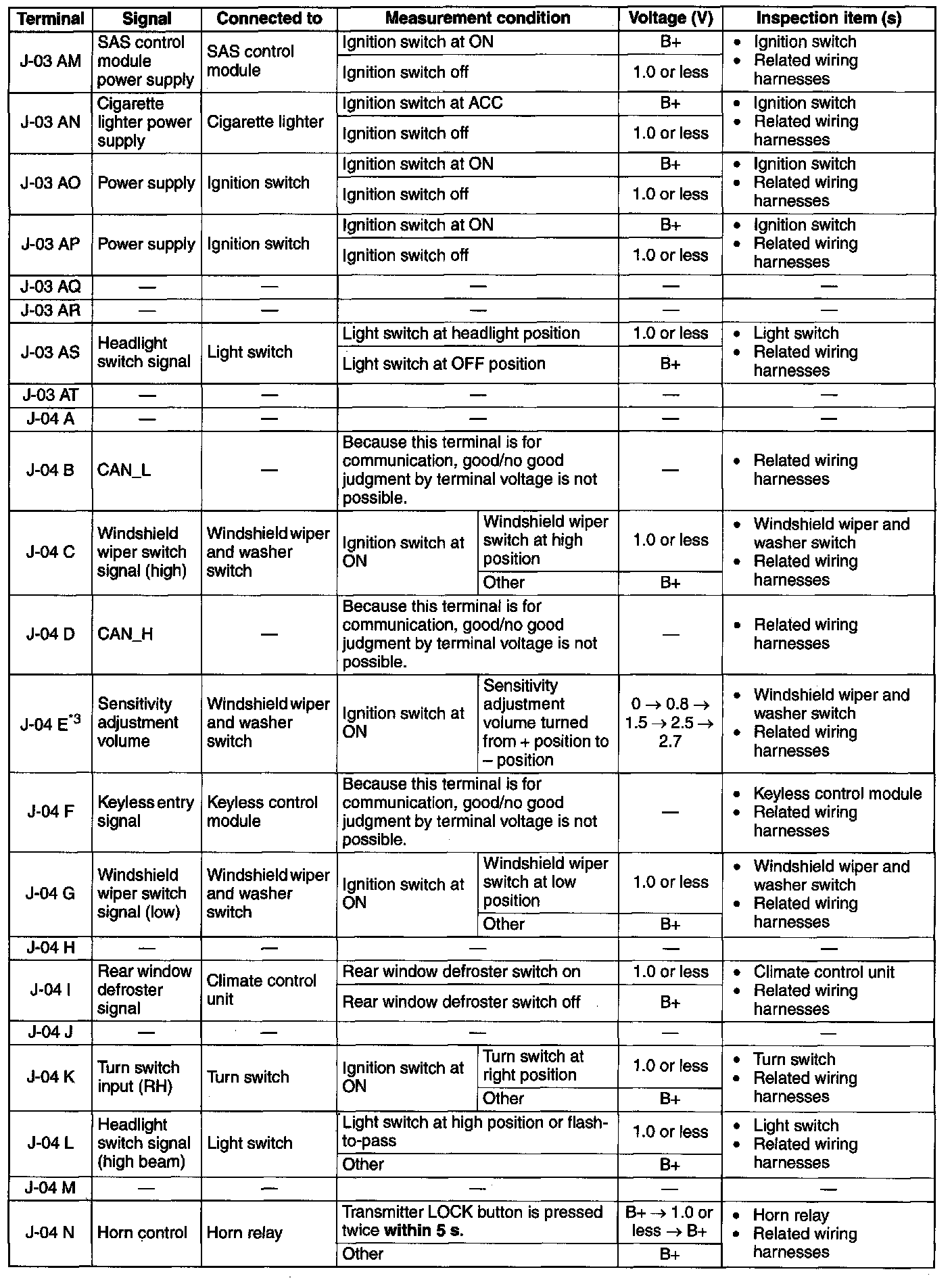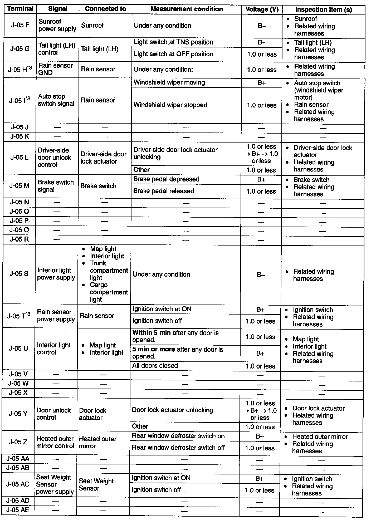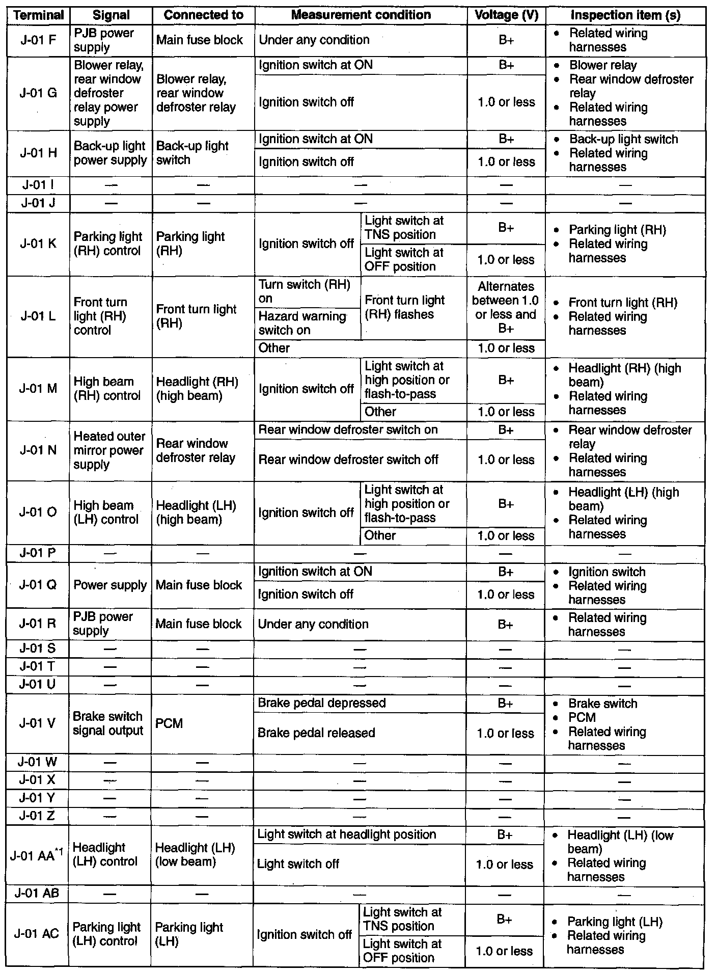 Terminal Voltage Table (Reference) (Part 10):