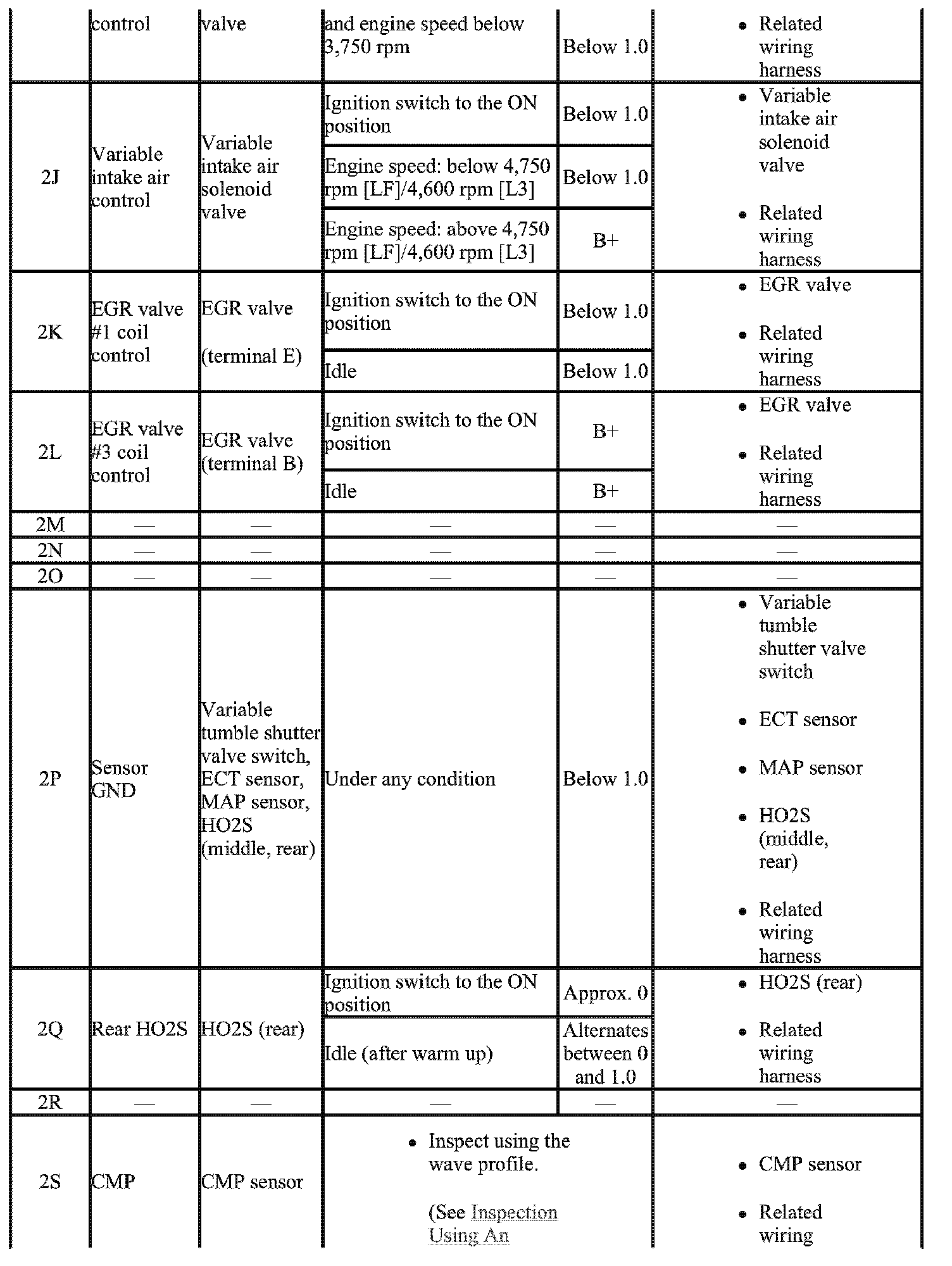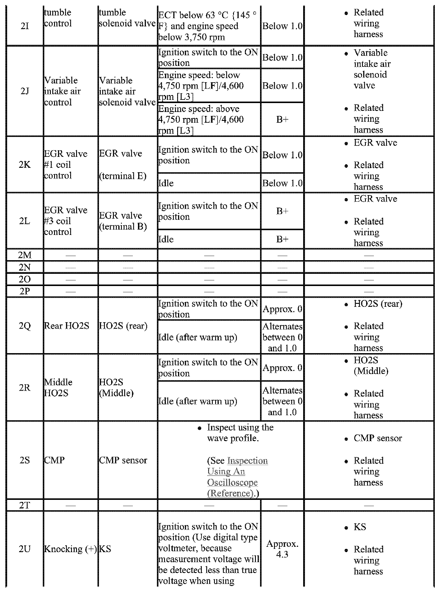 - The PCM terminal voltage can vary with the conditions when measuring and changes due to aged deterioration on the vehicle, causing false diagnosis. Therefore determine comprehensively where the malfunction occurs among the input systems, output Systems, and the PCM.