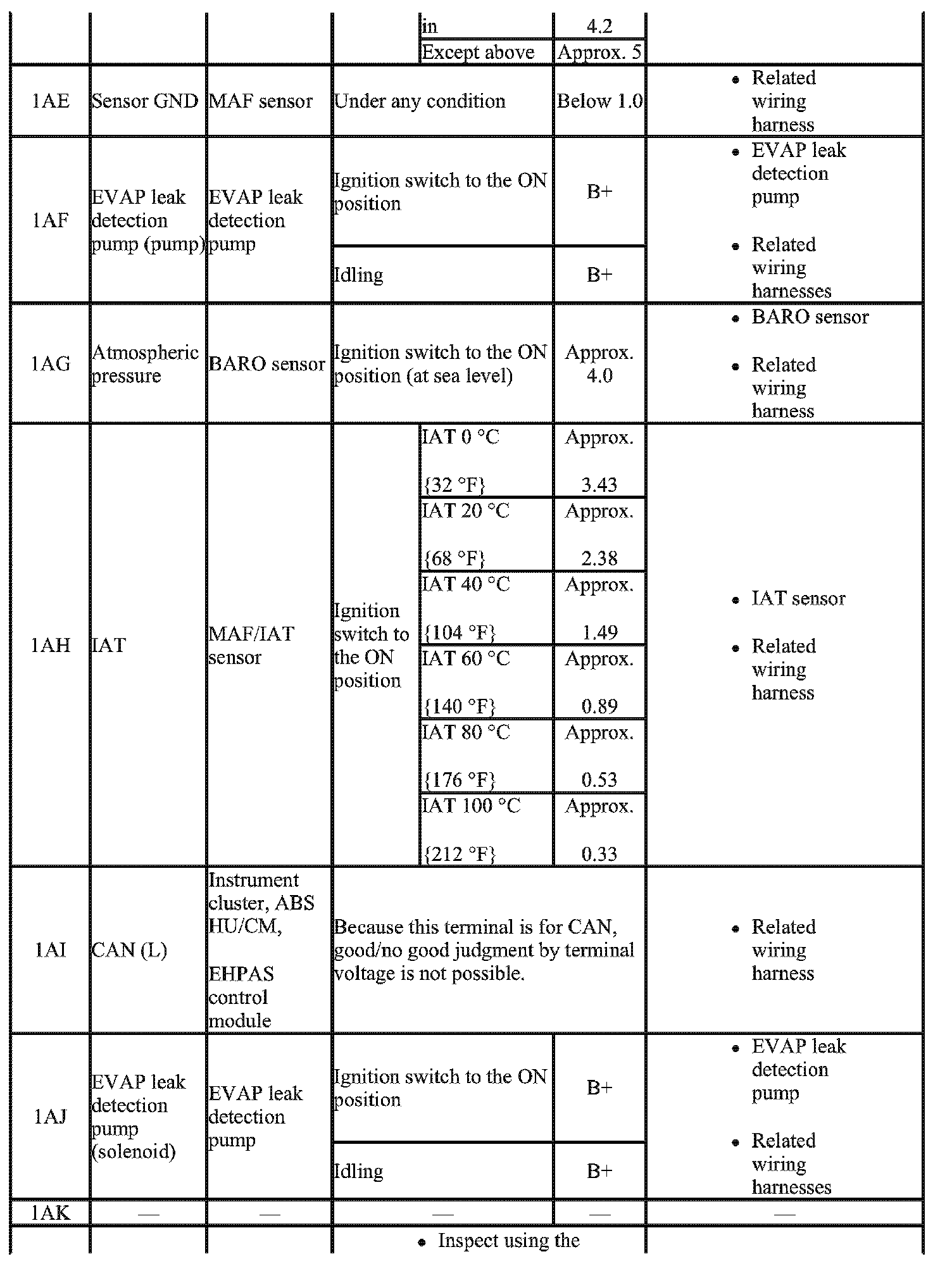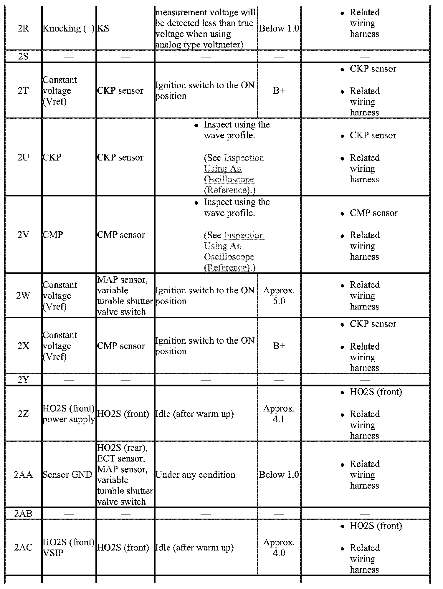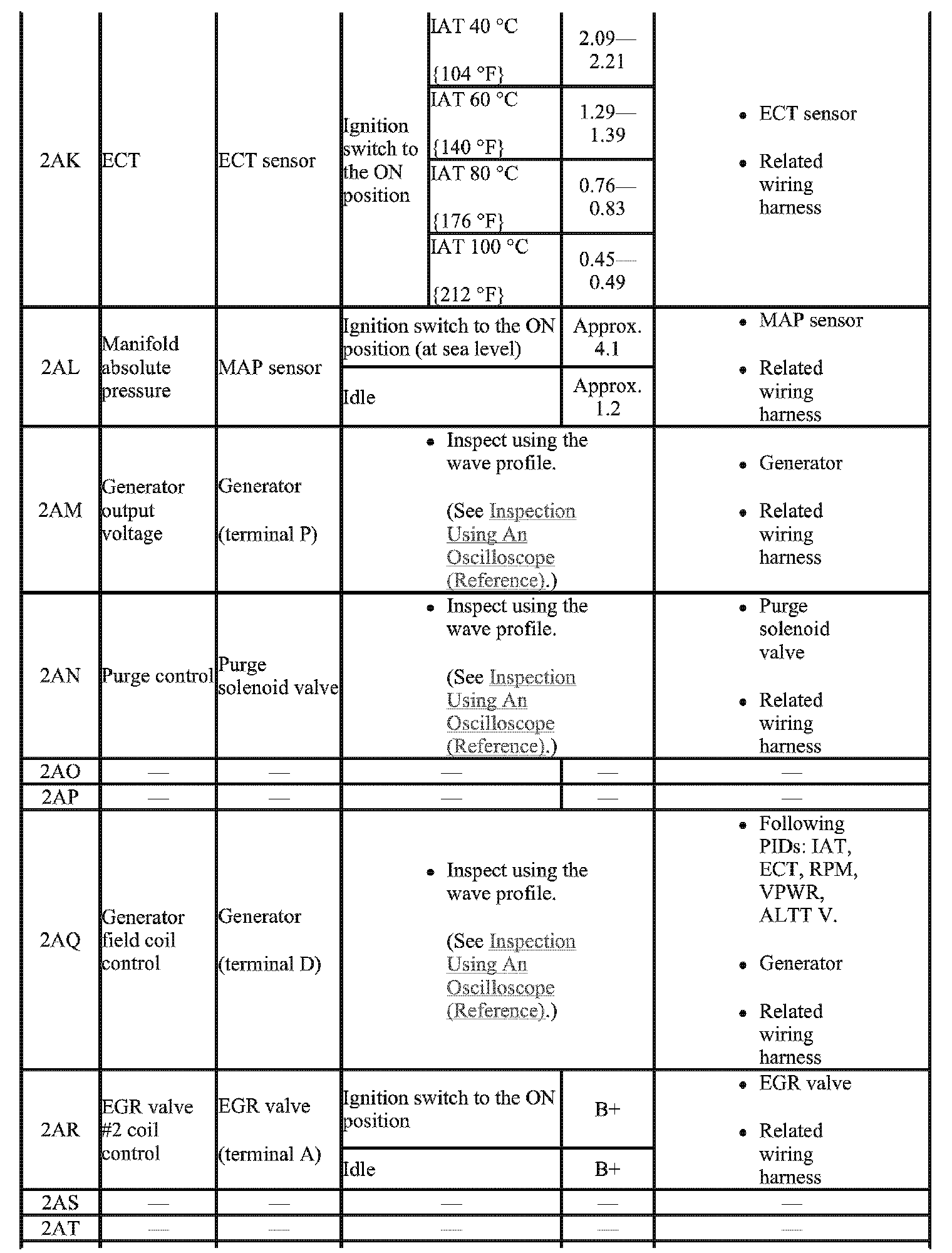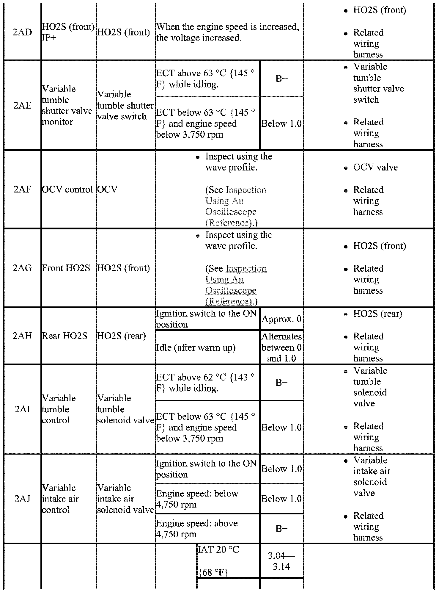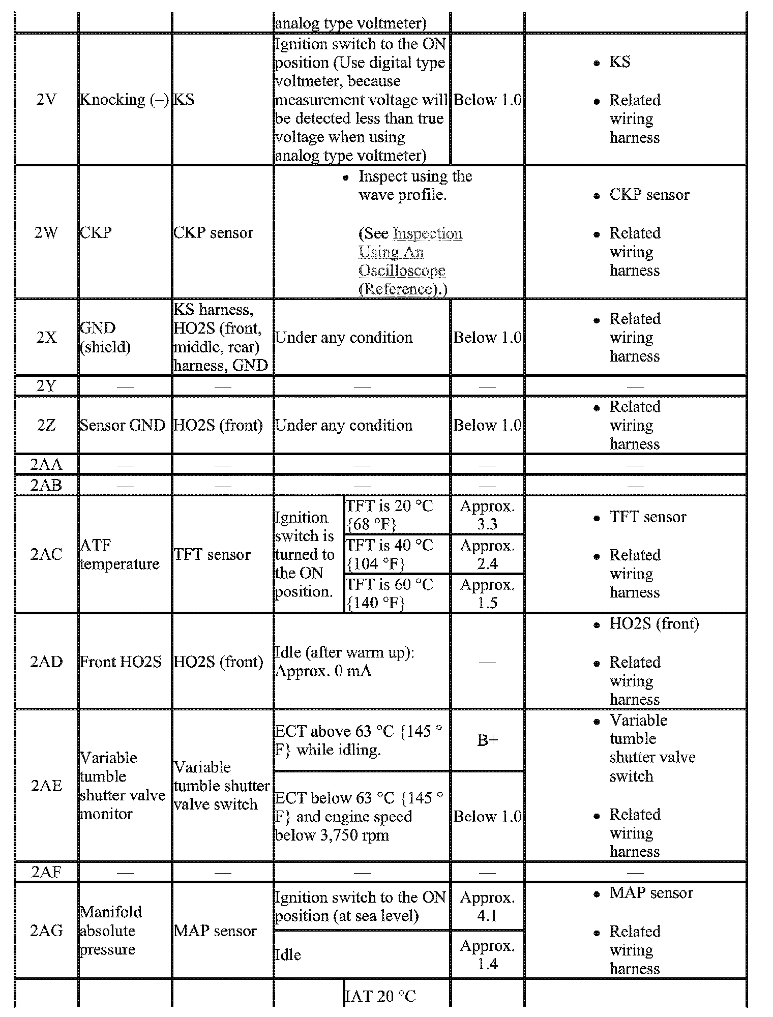 - The PCM terminal voltage can vary with the conditions when measuring and changes due to aged deterioration on the vehicle, causing false diagnosis. Therefore determine comprehensively where the malfunction occurs among the input systems, output systems, and the PCM.