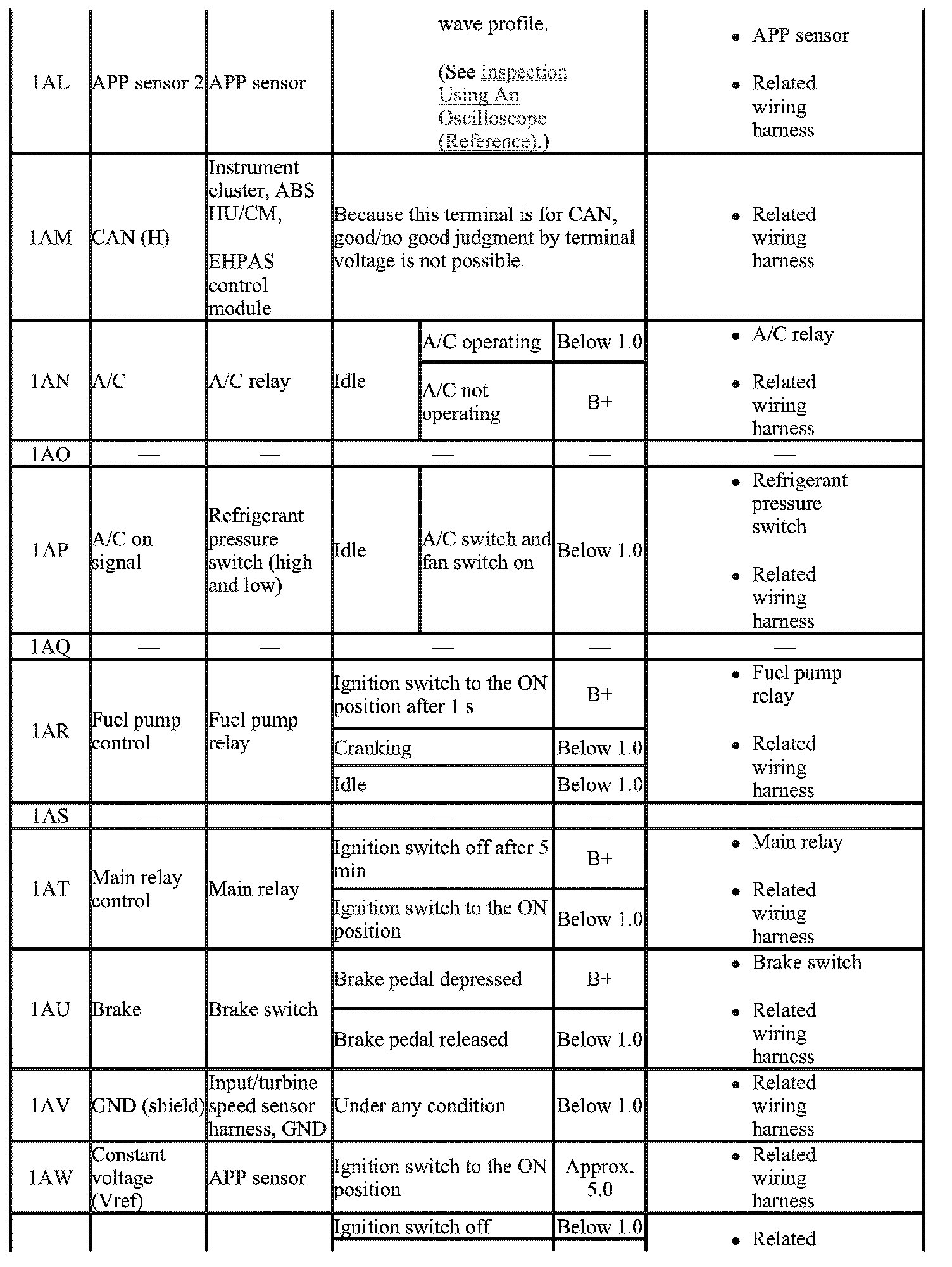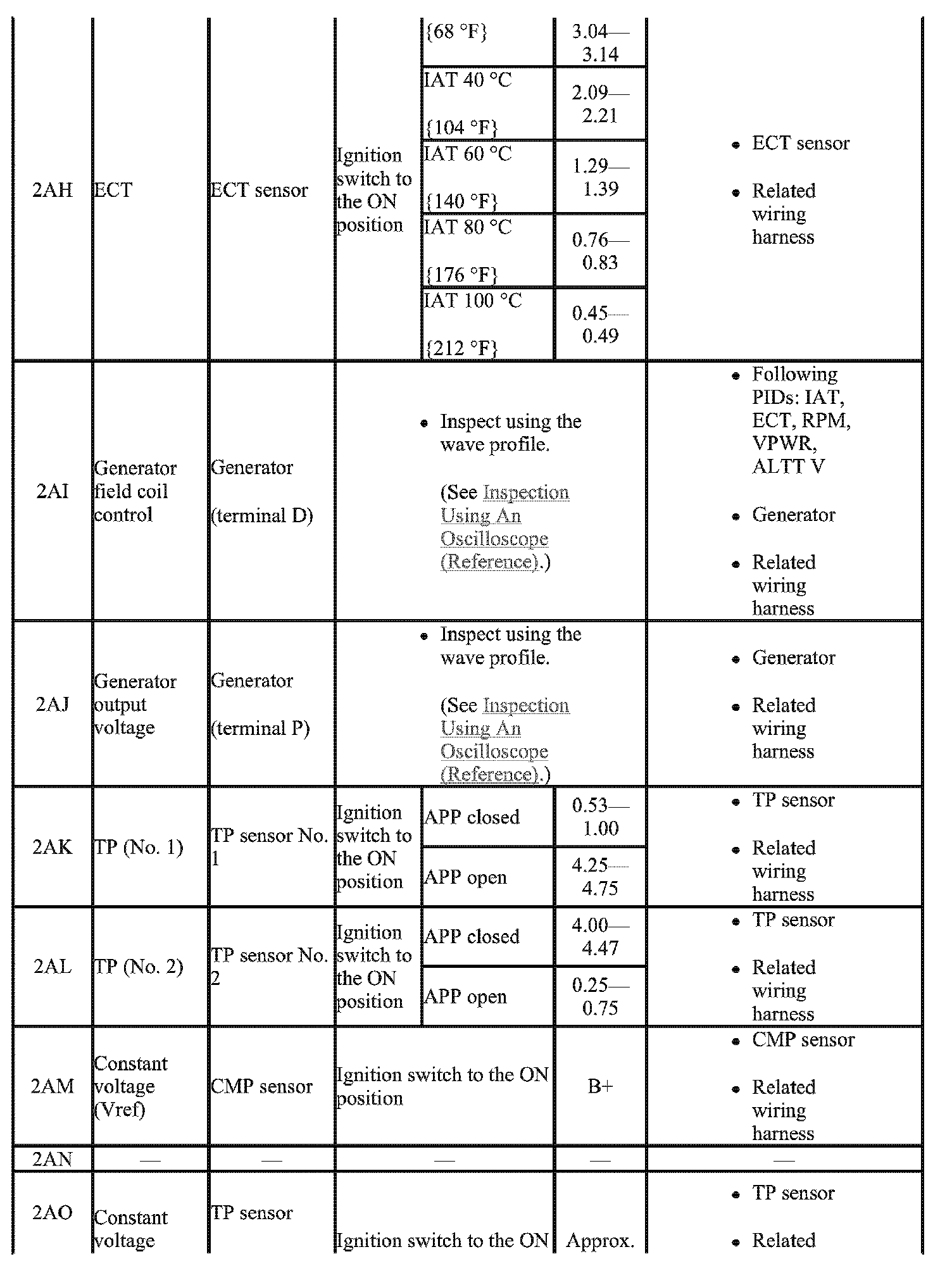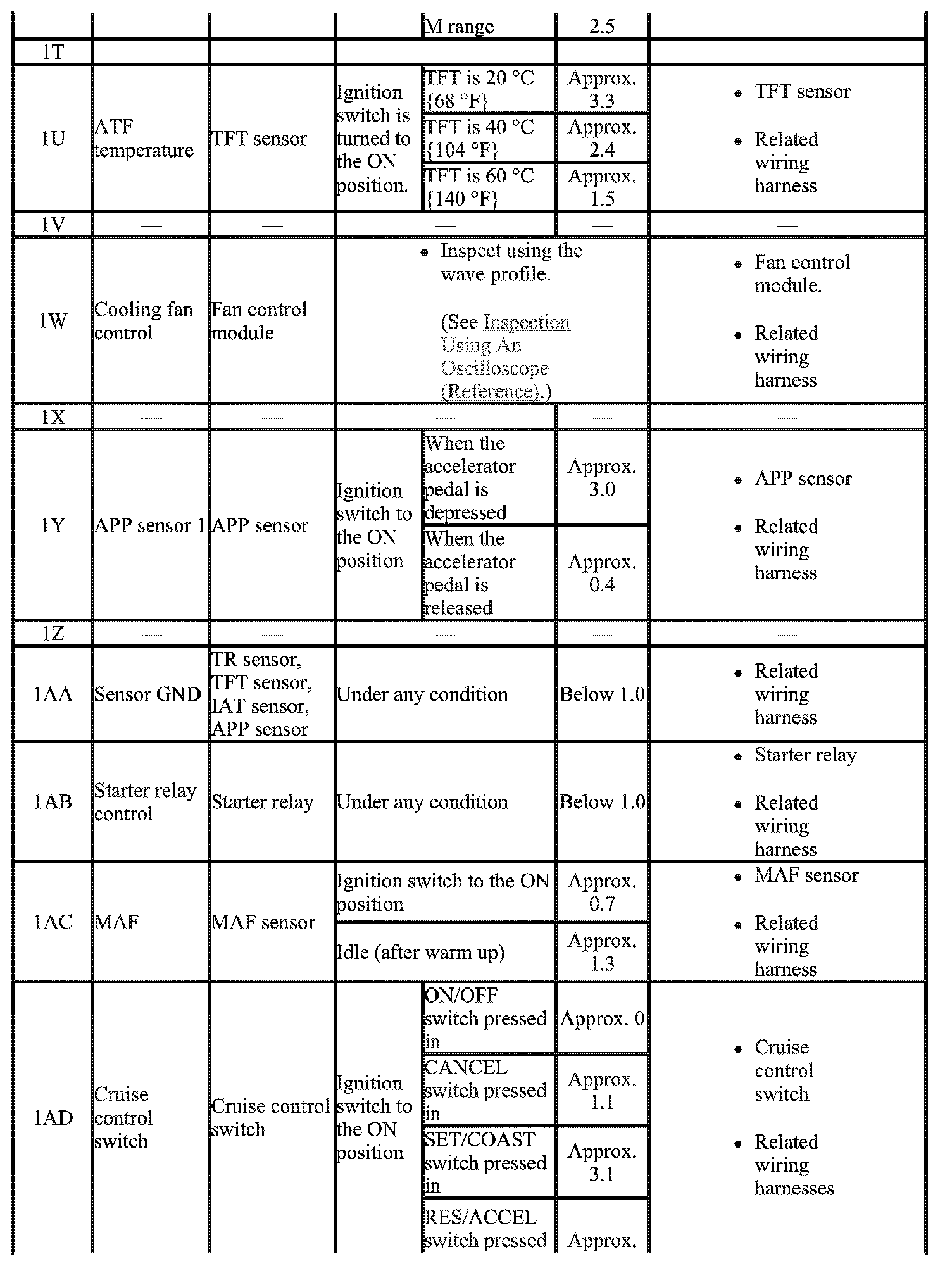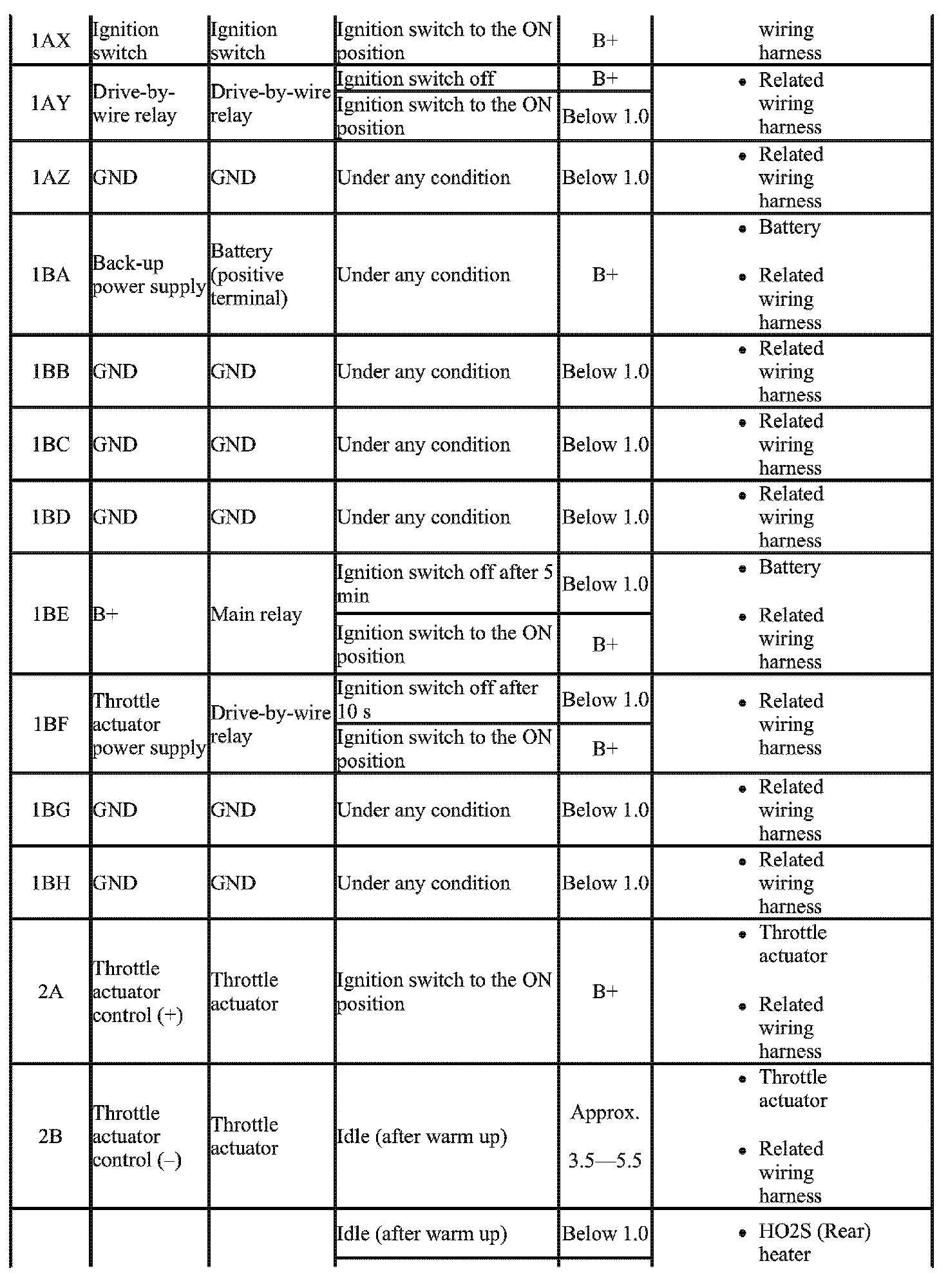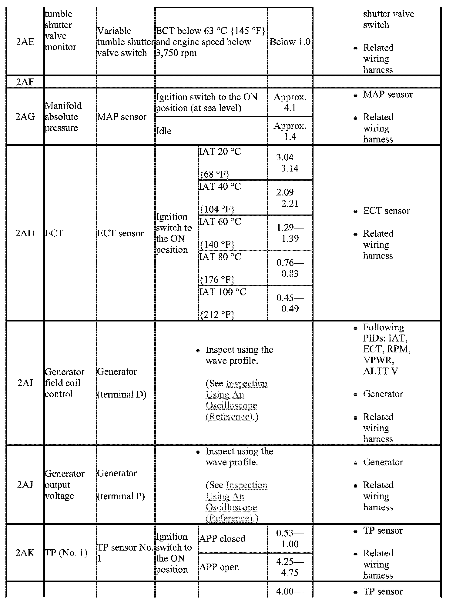 - The PCM terminal voltage can vary with the conditions when measuring and changes due to aged deterioration on the vehicle, causing false diagnosis. Therefore determine comprehensively where the malfunction occurs among the input systems, output systems, and the PCM.