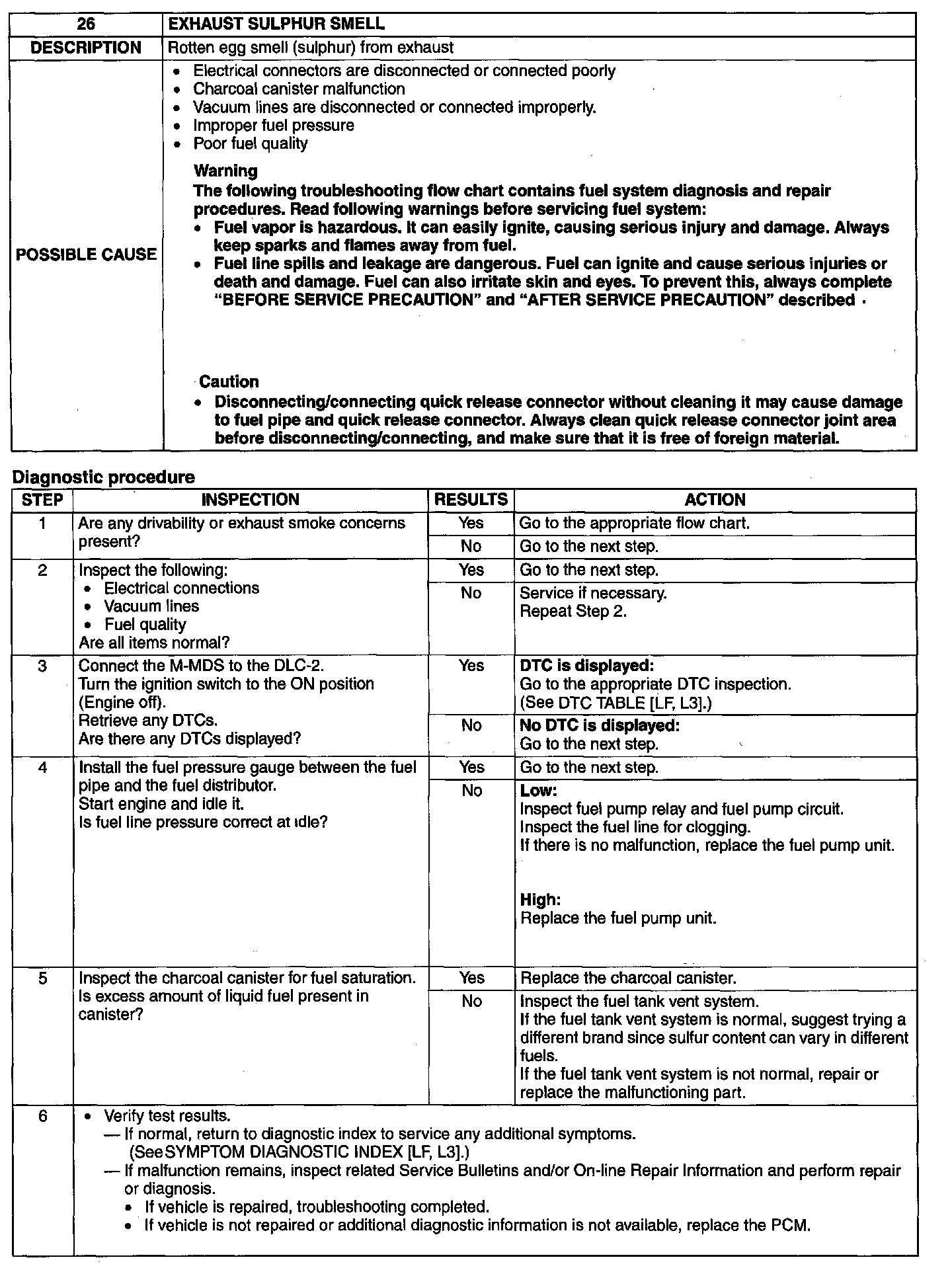 No. 26 Exhaust Sulphur Smell