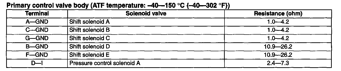 Primary Control Valve Body (ATF Temperature: -40-150 degrees C {-40-302 degrees F})