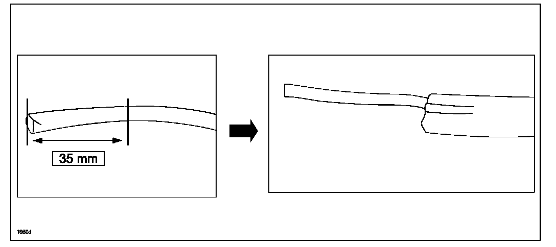 12. Cover the soldered wires with a heat shrink tube (length: 30 - 35 mm) as shown.