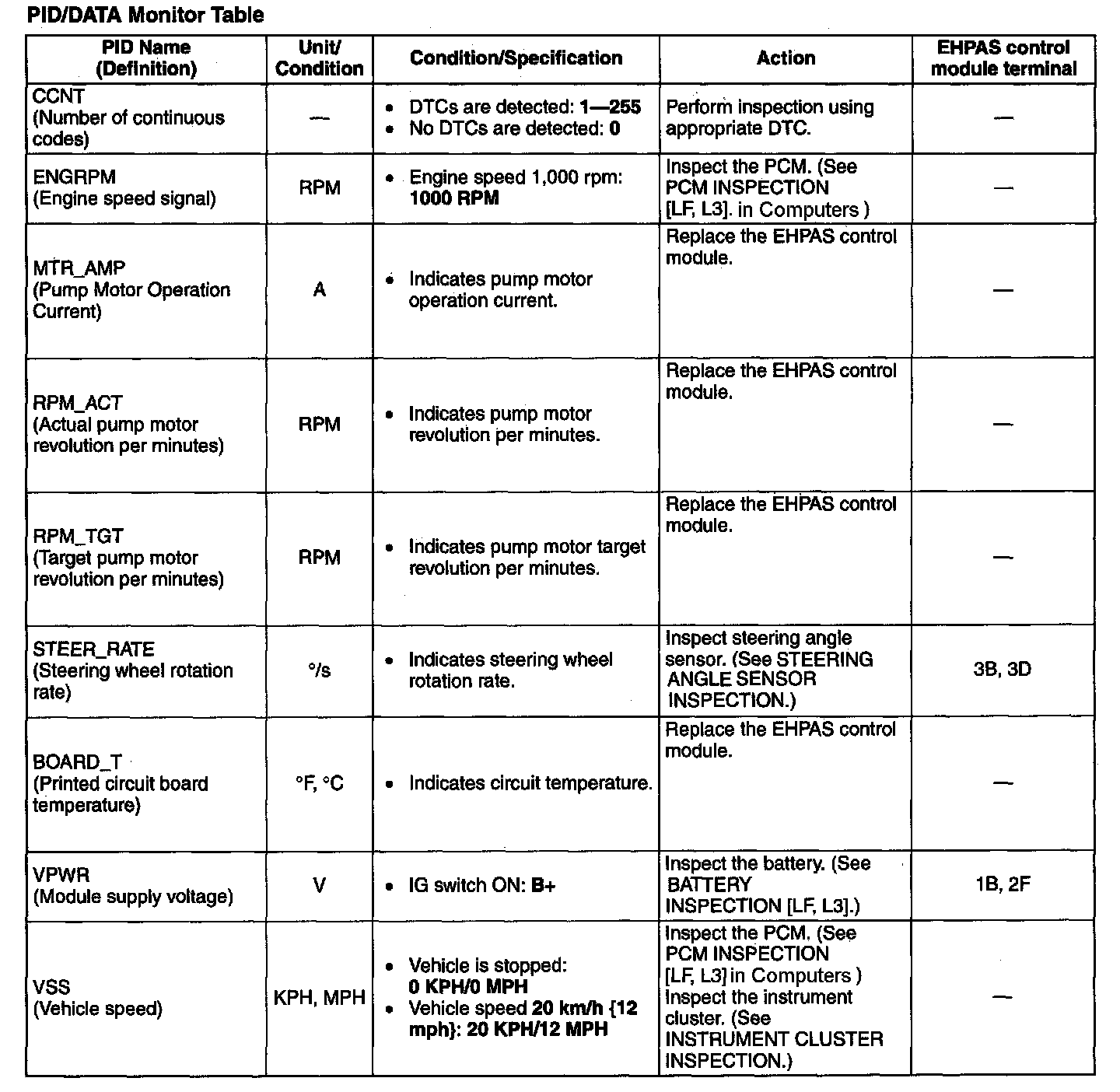 PID/DATA Monitor Table: