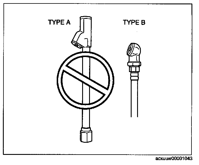 ^ To prevent damage to the valve area of the wheel unit or charging loss during air pressure adjustment, use a type B tool with a round end as shown in the figure, not a type A tool.