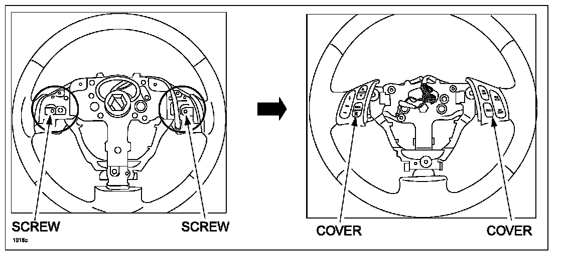 DO NOT allow the switch harness to get caught between the cover and steering wheel. Route the wire harness like it was before.