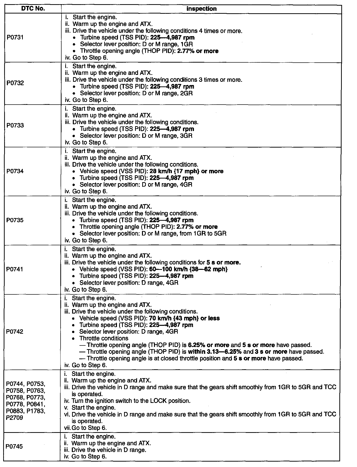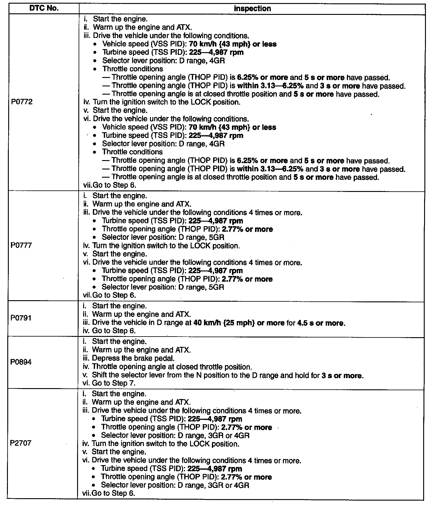 P0772 / P0777 / P0791 / P0894 / P2707: