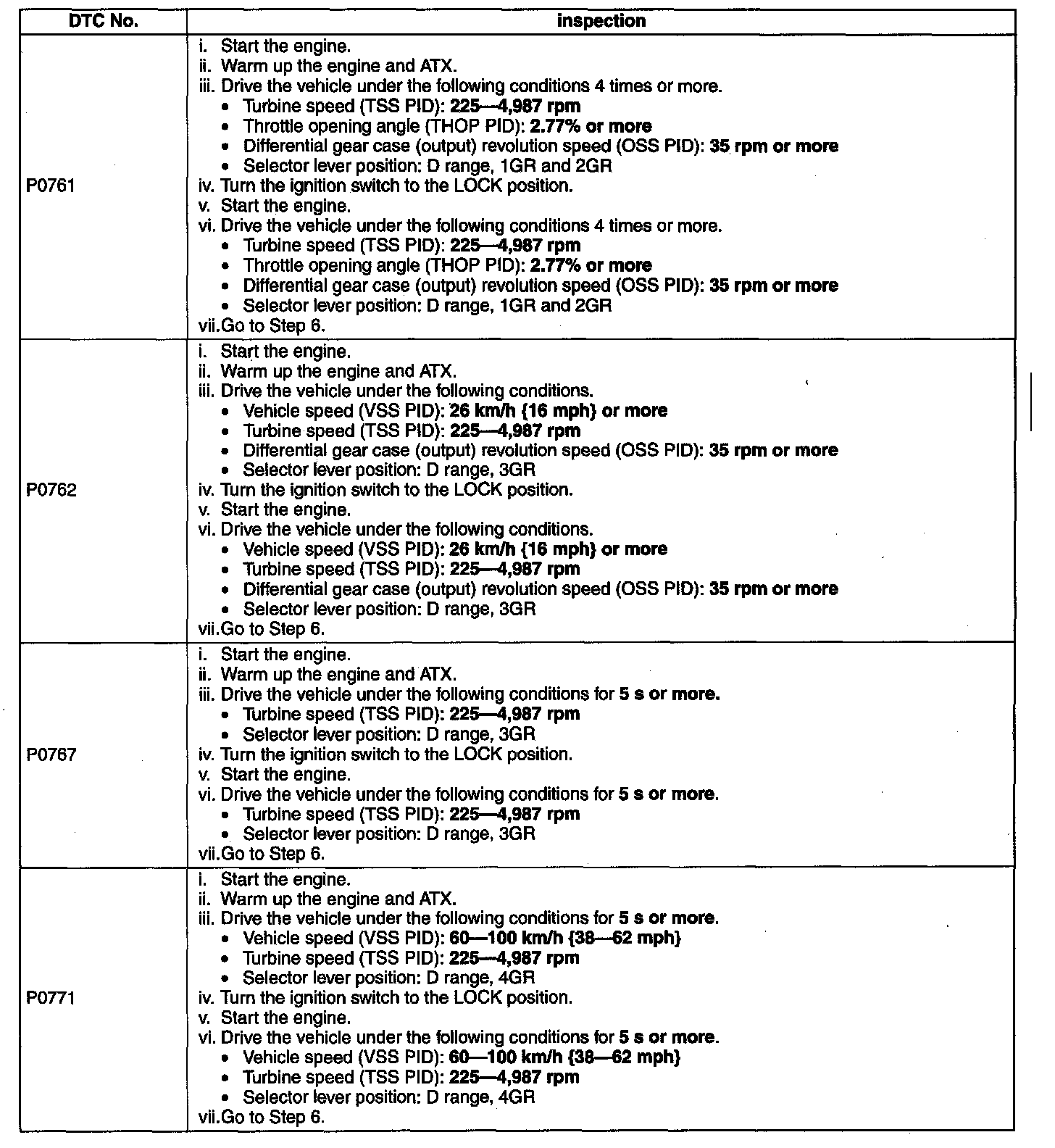 P0761-P0762 / P0767 / P0771: