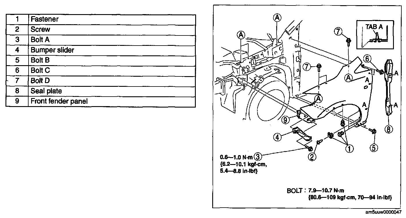 FRONT FENDER PANEL REMOVAL/INSTALLATION