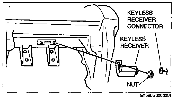5. Remove the nut, then remove the keyless receiver.