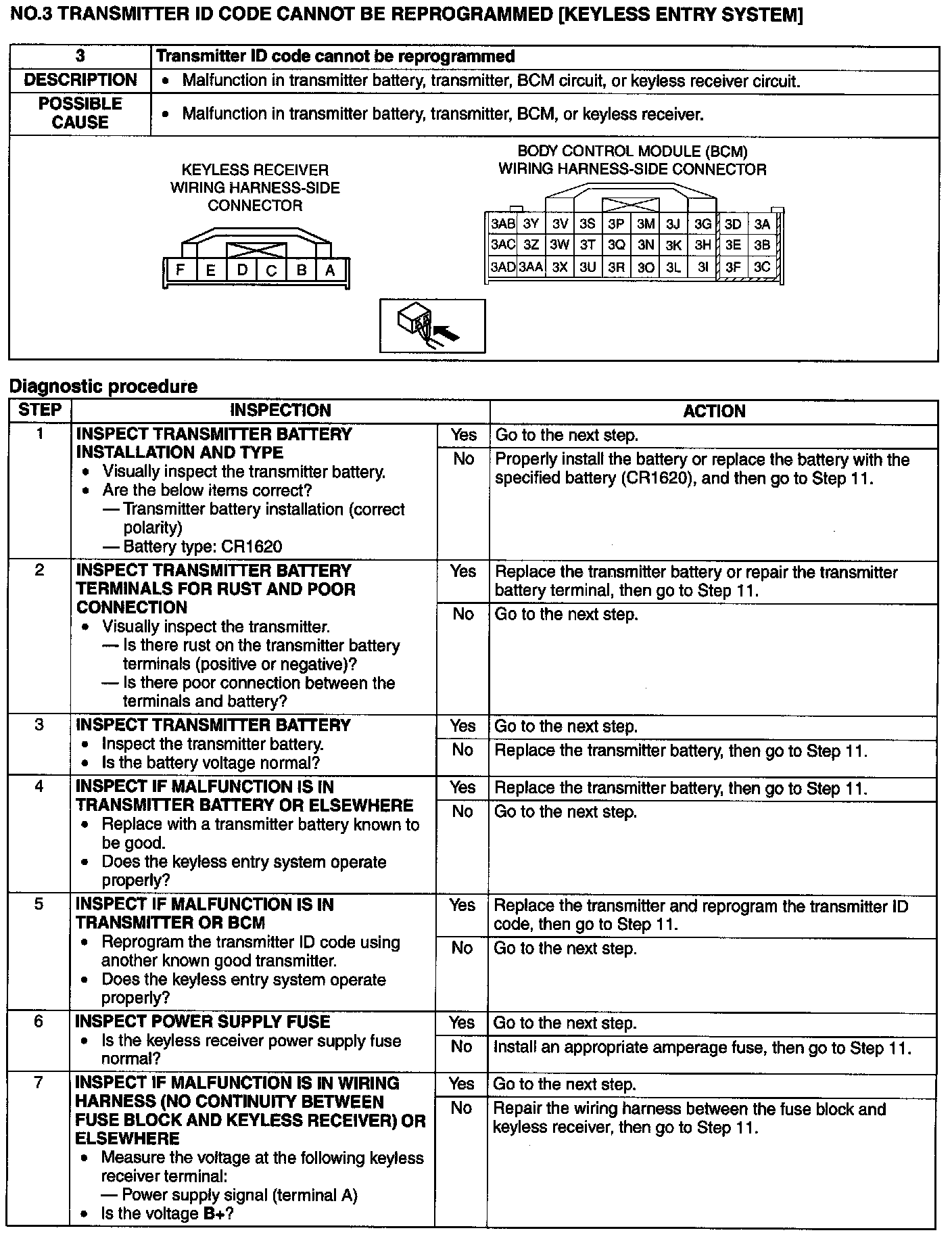 No.3 Transmitter ID Code Cannot Be Reprogrammed [Keyless Entry System]
