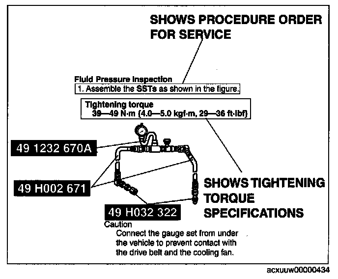 - The values indicate the upper and lower limits that must not be exceeded when performing inspections or adjustments.