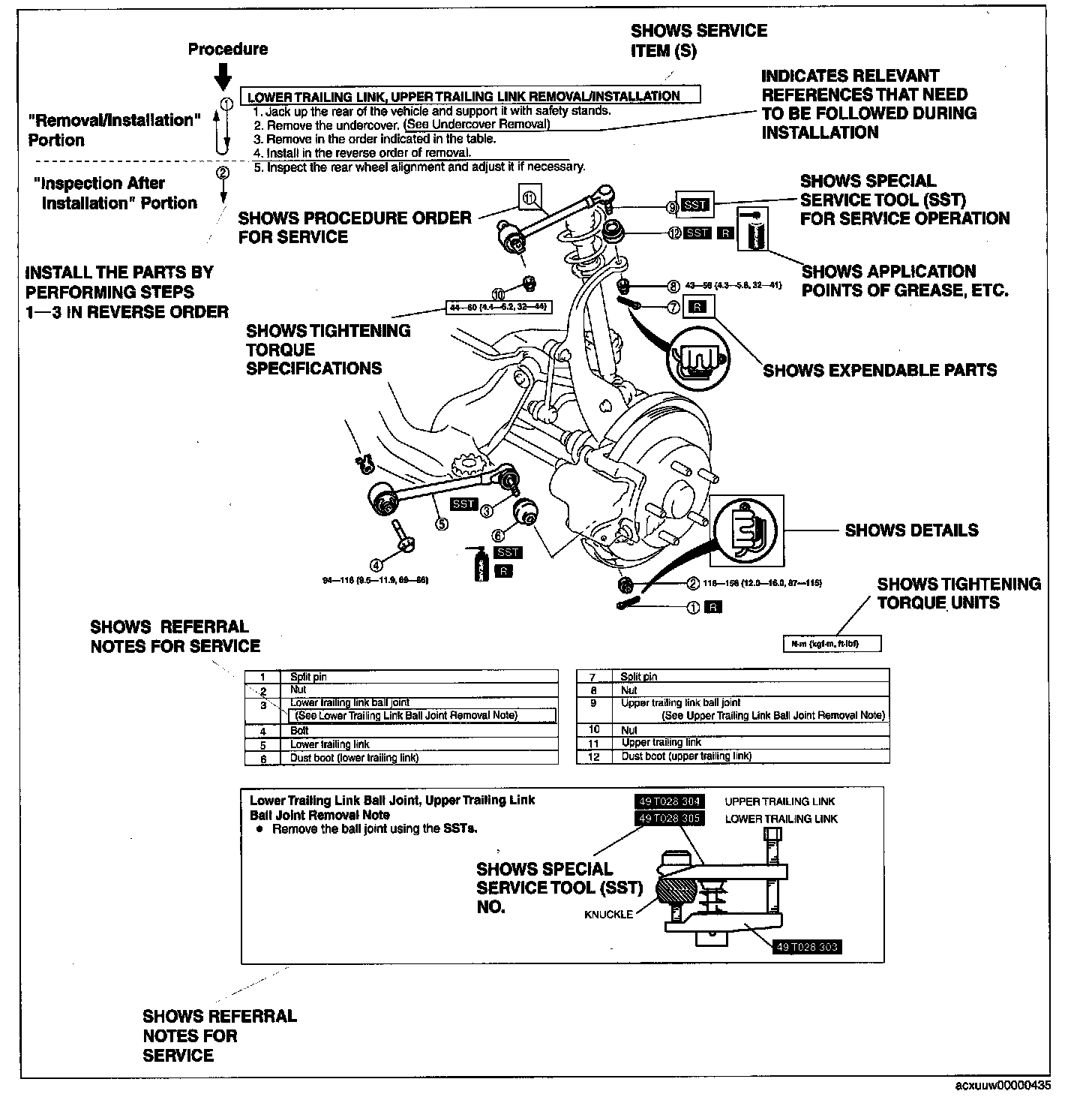 - Inspection and adjustment procedures are divided into steps. Important points regarding the location and contents of the procedures are explained in detail and shown in the illustrations.