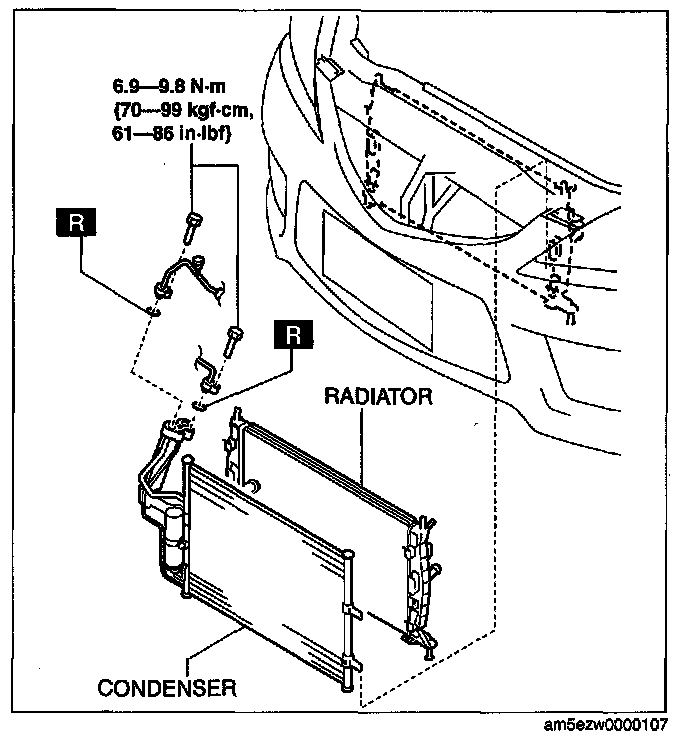 CONDENSER REMOVAL/INSTALLATION1. Discharge the refrigerant. (See REFRIGERANT CHARGING.)