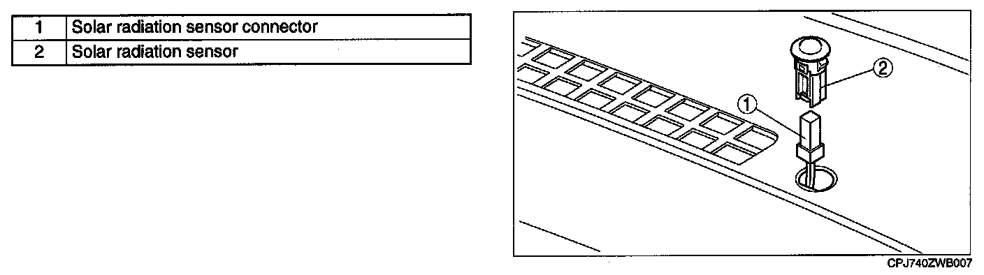 SOLAR RADIATION SENSOR REMOVAL/INSTALLATION [FULL-AUTO AIR CONDITIONER]1. Disconnect the negative battery cable.