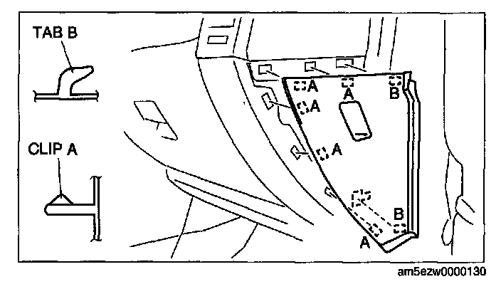 1. Pull the side panel outward and detach clips A.