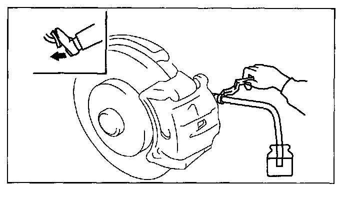 1. Remove the bleeder cap on the brake caliper, and attach a vinyl tube to the bleeder screw.