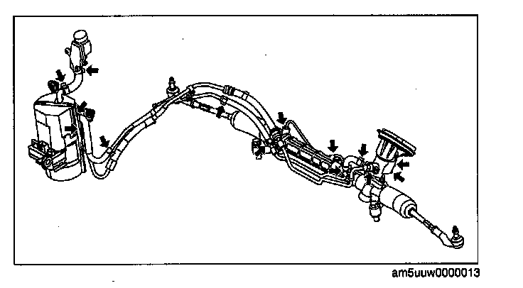 3. Inspect for the fluid leakage at the points indicated in the figure.