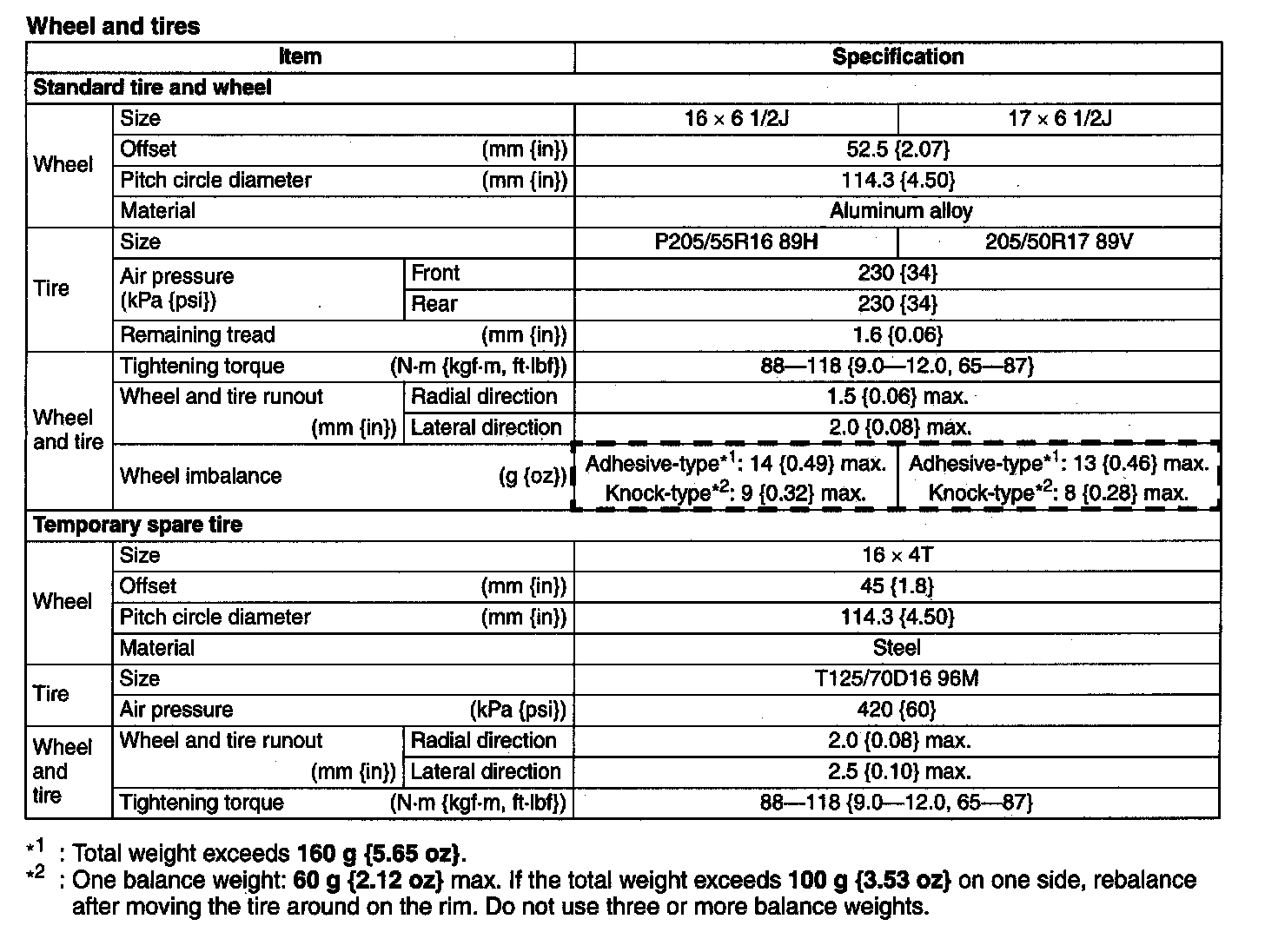 Wheels and Tires: Specifications